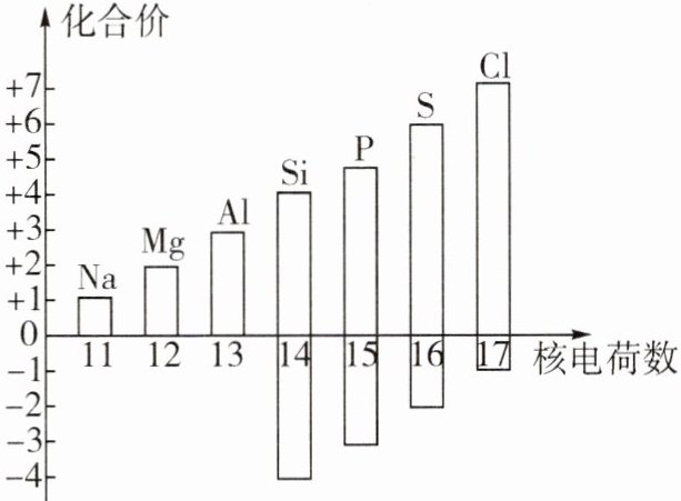 18 化学是在分子和原子的水平上,研究物质的组成、结构和性质的自然科学。如图是原子核电荷数为11~17的元素的最高和最低化合价。