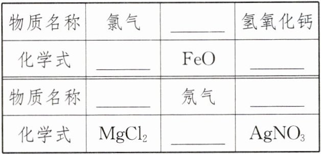 Cl₂ 氧化亚铁 Ca(OH)₂ 氯化镁 Ne 硝酸银