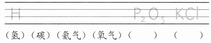 (1)请把下列括号里中文名称的化学符号写在上面的四线格中,再把化学符号的中文名称写在下面的括号里。