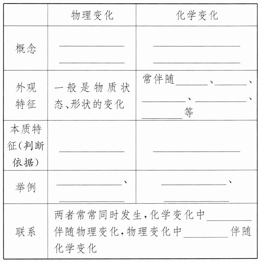 1 物质变化可分为物理变化和化学变化,二者的区别与联系见下表: