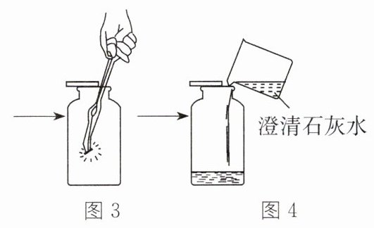 15 在做“氧气的性质”实验中呈现了如图所示的实验过程。探究木炭在氧气里燃烧生成什么?