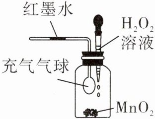 D [解析]过氧化氢在催化剂二氧化锰的作用下,迅速分解产生大量氧气,会造成瓶内压强增大,充气气球内的气体沿导管逸出,会观察到气球缩小,红墨水左移。