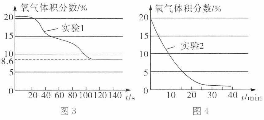 (3)实验2 反应后,实验1集气瓶中剩余氧气体积分数为8.6%,而实验2中氧气几乎耗尽
