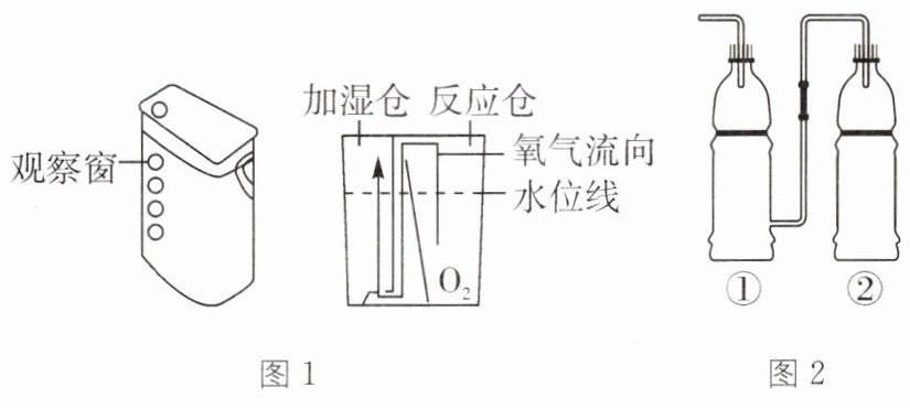 2. 学习小组开展了“设计和制作简易供氧器”的实践活动。在研究了某品牌制氧机的装置原理(图1)后,利用身边物品自制了如图2所示的简易供氧器。
