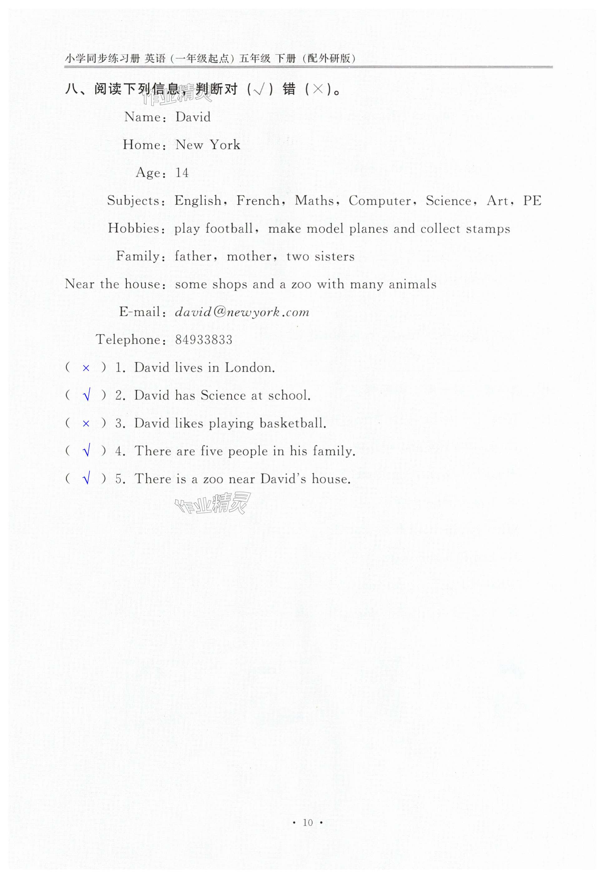 注:目前有些书本章节名称可能整理的还不是很完善,但都是按照顺序排列的,请同学们按照顺序仔细查找。练习册 2025年小学同步练习册五年级英语下册外研版一年级起点山东专用 答案主要是用来给同学们做完题方便对答案用的,请勿直接抄袭。