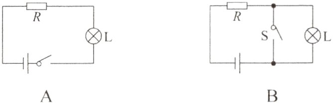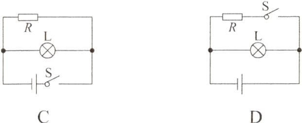 3.(鄂州)老师展示了四个电路图,当开关S闭合后,灯L与电阻R串联的是( )