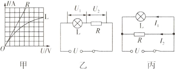 15.图甲是灯泡L和定值电阻R的I - U图象,将L和R先后以图乙和图丙两种方式连在同一电源上,若图乙中U₁:U₂=m,图丙中I₁:I₂=n,则下列关系式正确的是( )