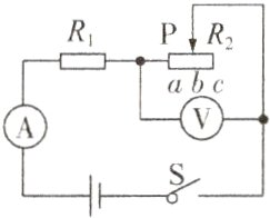 16.在如图所示的电路中,电源电压不变,闭合开关,滑动变阻器R₂的滑片P分别在中点b处和c端时,电压表的示数之比为3:4。求: