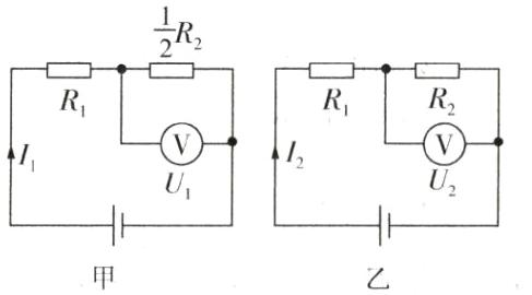 由图乙可得$U_{2}=I_{2}R_{2}=\frac{U}{R_{1}+R_{2}}\times R_{2}=\frac{UR_{2}}{R_{1}+R_{2}}$
