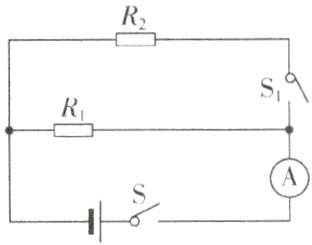(1)开关$S$闭合、$S_{1}$断开时,电流表的示数。