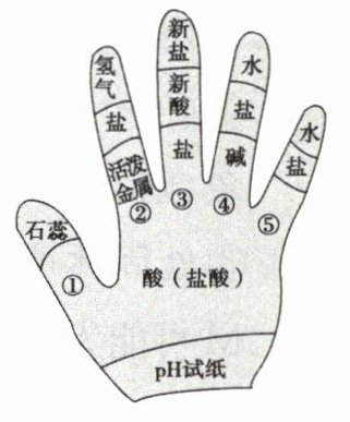 12. 构建模型和知识网络是化学学习中重要的学习方法,小华同学利用左手构建酸的性质知识网络,如图所示,请结合图示回答下列问题。