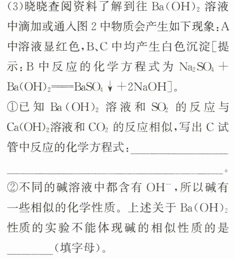(3)①$Ba(OH)_2 + SO_2 = BaSO_3\downarrow + H_2O$ ②B
