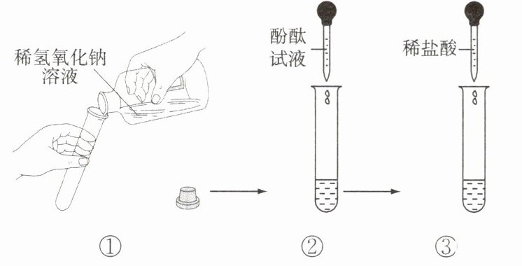 对于没有明显实验现象的中和反应,如稀盐酸与稀氢氧化钠溶液的反应,要证明它们之间确实发生了化学反应,可通过下图所示实验步骤进行操作。