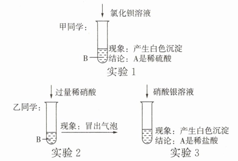 【猜想假设】甲同学:A是稀硫酸;乙同学:A是稀盐酸。