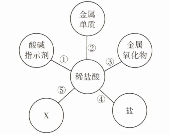 8.(崂山区期末)归纳是学习的重要方法,如图是我们复习时归纳出稀盐酸的五条化学性质(连线表示相互反应)。请回答以下问题。