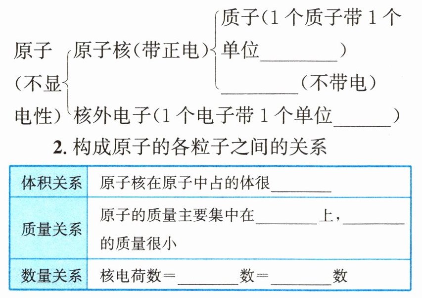 1. 正电荷 中子 负电荷 2. 小 原子核 电子 质子 核外电子