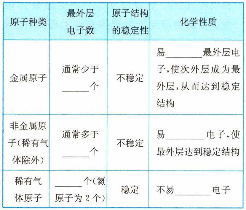 8. ①原子核 质子数 ②电子层 ③电子数 8 ④化学性质 9. 4 失去 4 得到 8 得失