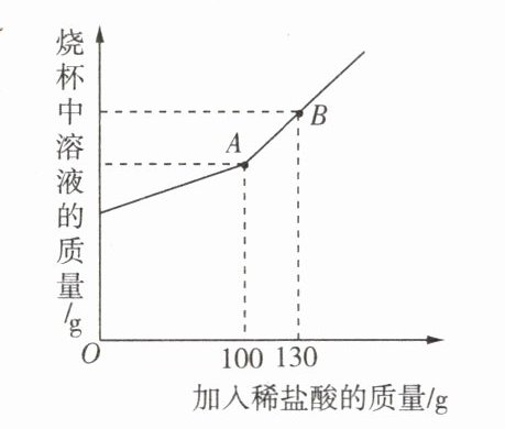 12.侯氏制碱法生产的碳酸钠中常含有少量的氯化钠。现有碳酸钠和氯化钠的混合物样品12.5g,将其放入干净的烧杯中,加入100g水,使其完全溶解。向所得溶液中加入溶质质量分数为7.3%的稀盐酸,烧杯中溶液的质量与加入稀盐酸的质量关系曲线如图所示。请回答下列问题。