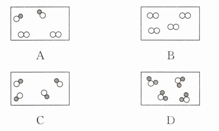 10. 下列各图中,“○”和“●”分别表示两种不同元素的原子,其中表示混合物的是( )