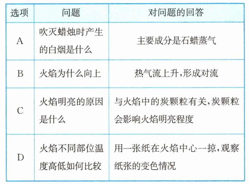 8. 下表中列举了法拉第《蜡烛的故事》中涉及的部分问题及对问题的回答,其中“对问题的回答”属于“设计实验方案”的是( )