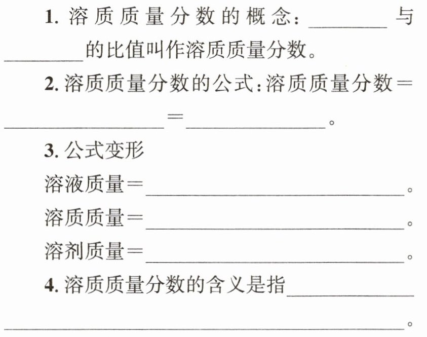 2. $\frac{溶质质量}{溶质质量 + 溶剂质量}×100\%$ $\frac{溶质质量}{溶液质量}×100\%$