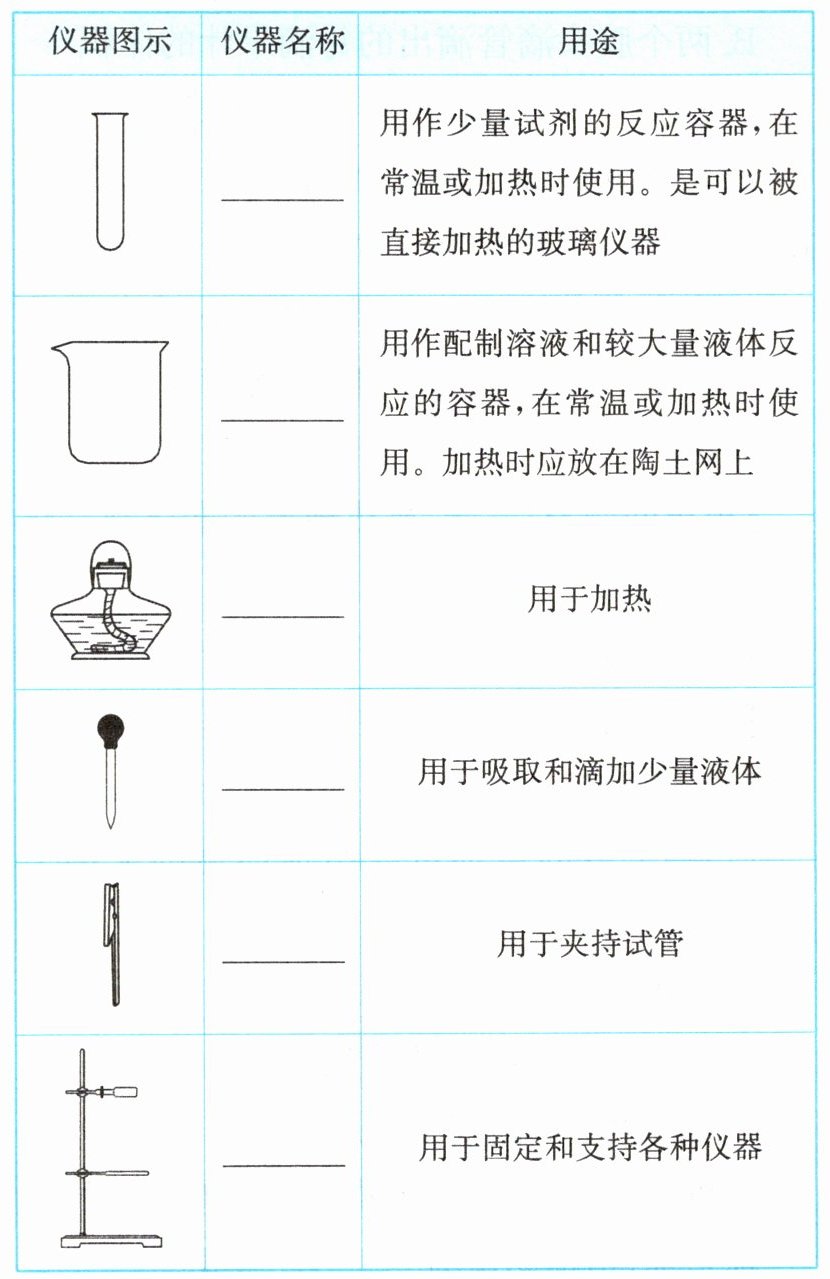 1. 认识常见实验仪器。
