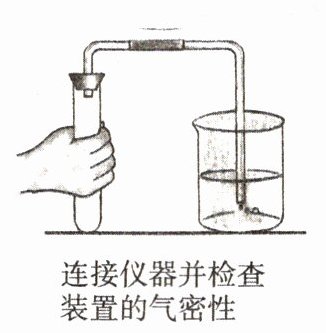 17. 按右图所示连接好仪器。将导管的一端浸入水中,用手握住试管,如果导管口有_____冒出,证明装置连接完好、不漏气。