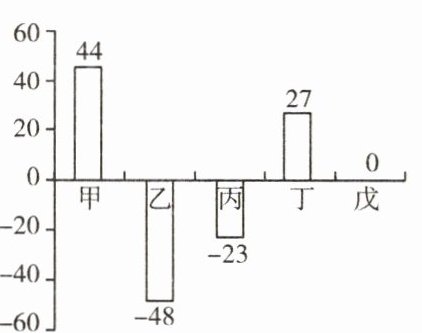 12. 在一个密闭容器中,有甲、乙、丙、丁、戊五种物质,在一定条件下发生反应,测得反应前后各物质的质量变化量如图所示(图中正数表示物质质量的增加量,负数表示物质质量的减少量,$0$表示物质质量不变),下列说法正确的是( )