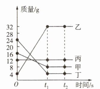 8. 在一密闭容器中加入甲、乙、丙、丁四种物质,在一定条件下发生化学反应,测得反应前及$t_{1}$、$t_{2}$时各物质质量如图所示。下列说法不正确的是( )
