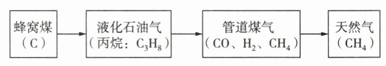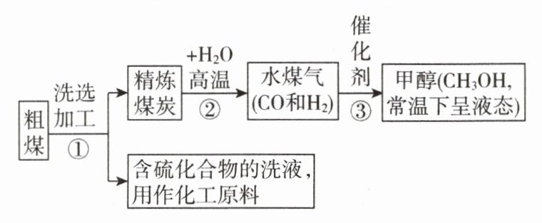 (3)第②步是精炼煤与水蒸气的反应,化学方程式为__$C + H_{2}O\xlongequal{高温}CO + H_{2}$__。