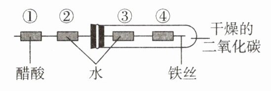 7. 为了验证二氧化碳的化学性质,某同学在一根铁丝上固定了4片干燥的蓝色石蕊试纸,按照图示将醋酸和水滴加到相应的位置。下列说法正确的是(D)