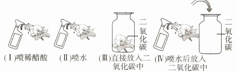 8.(市南区一模)为探究二氧化碳能否与水发生化学反应,用四朵石蕊试液染成紫色的干燥小花完成下图四个实验。实验I、IV中小花变红,实验II、III中小花不变色。下列说法不正确的是(C)