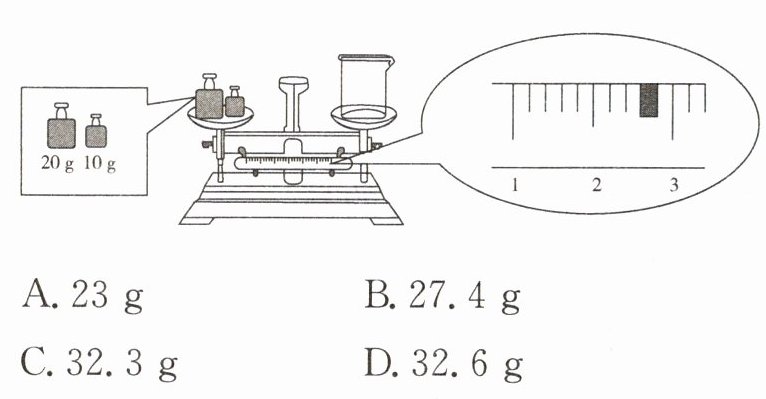 18. 某同学用托盘天平称量烧杯的质量,天平平衡后的状态如图所示,该同学称取烧杯的实际质量为( )