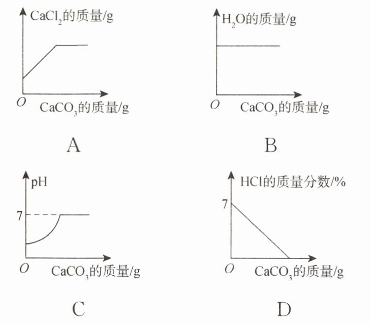 11.(青岛一模)实验室制取CO₂的残余液中含有少量盐酸,为了获得CaCl₂溶液,向其中加入石灰石。下列图像不能正确反映其变化过程的是( )