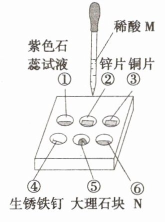 C. ⑤处固体明显减少,则M可能为稀硫酸