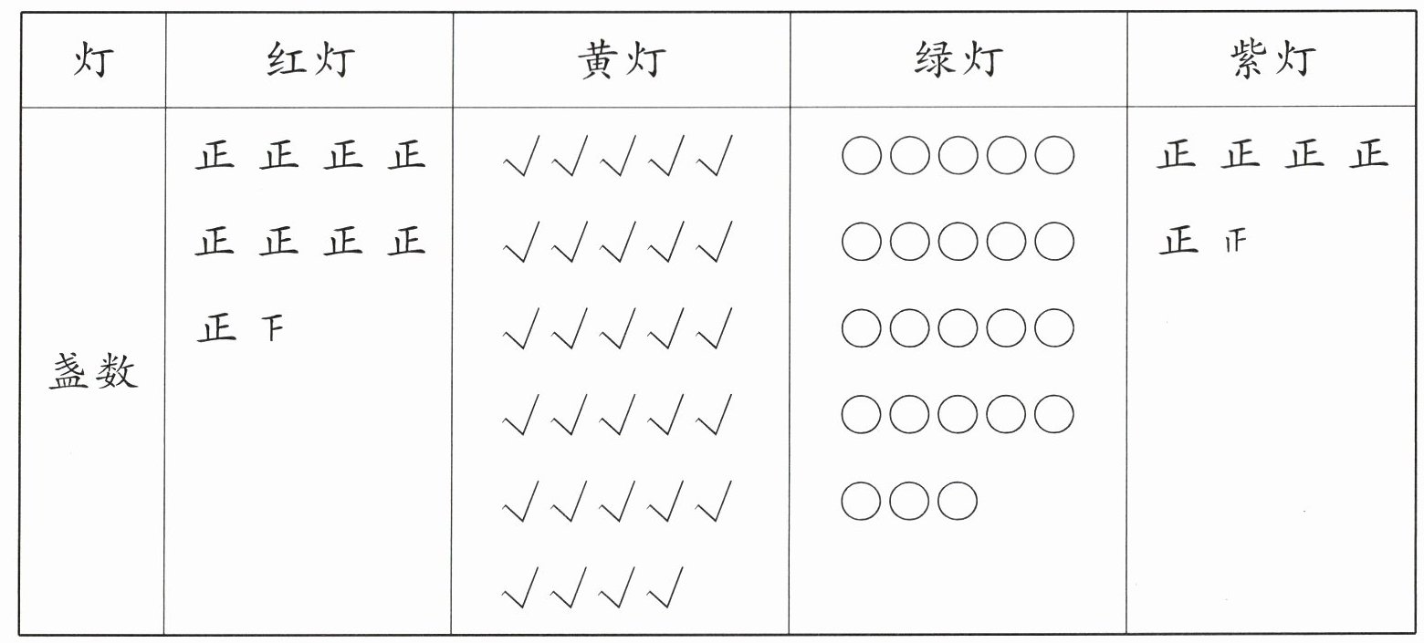 (1)把上面的统计结果填入下表中。