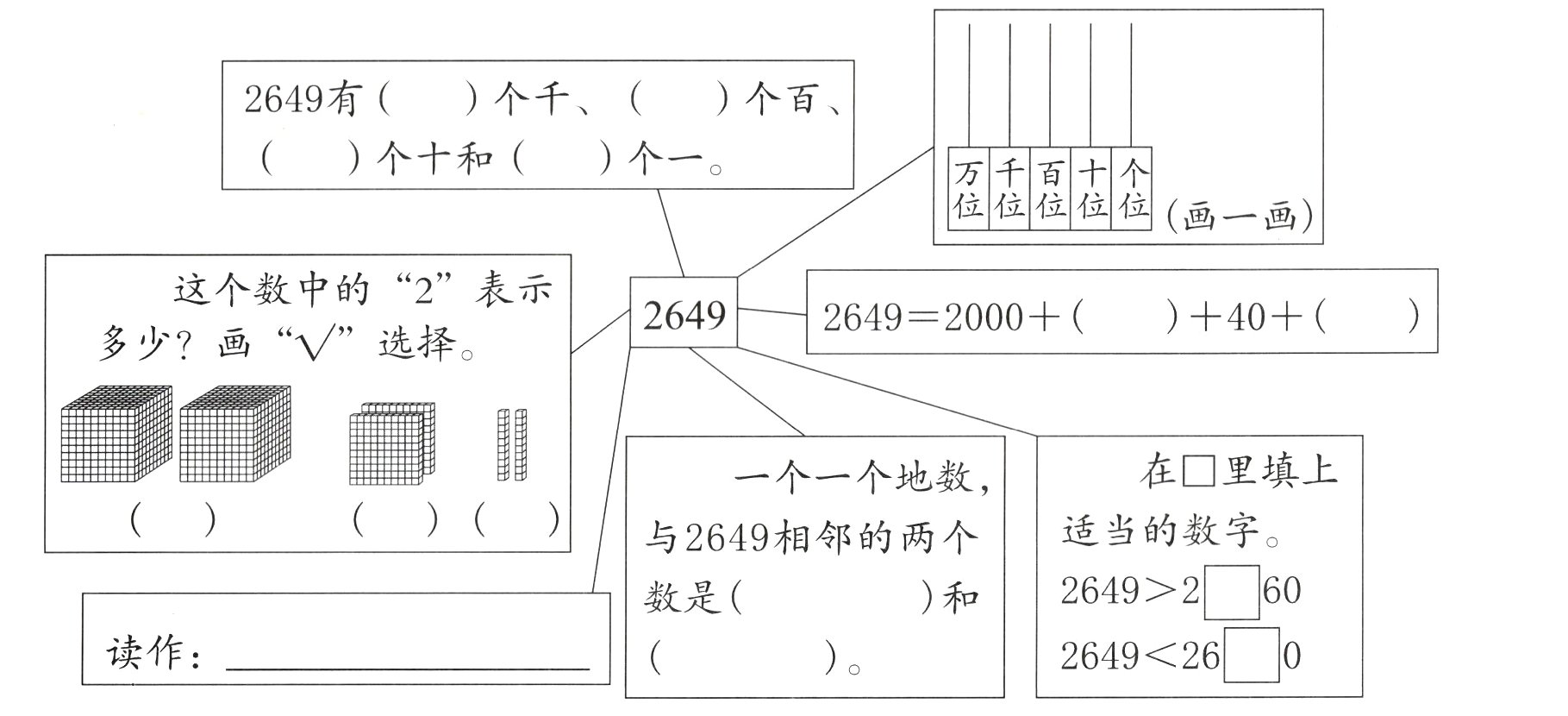 2.在5099、6050和7001中,最接近6000的数是( )。