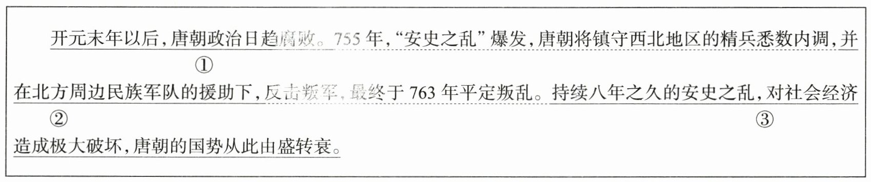 4. 小丽在学习“安史之乱与唐朝衰亡”后作了如下总结。其中③属于( )