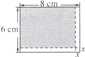 5. 如图,长方形纸片的长、宽分别为8 cm和6 cm. 若在长、宽上分别剪去宽为$x$ cm的纸条,则剩余部分(阴影部分)的面积$y$与$x$之间的函数关系式为______________,自变量$x$的取值范围是__________.