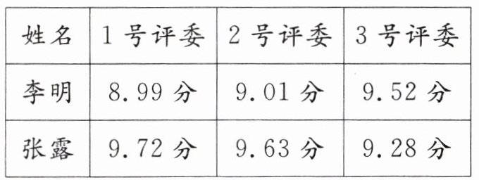 答:三位评委给李明和张露两位同学的分数分别相差0.73分、0.62分、0.24分。