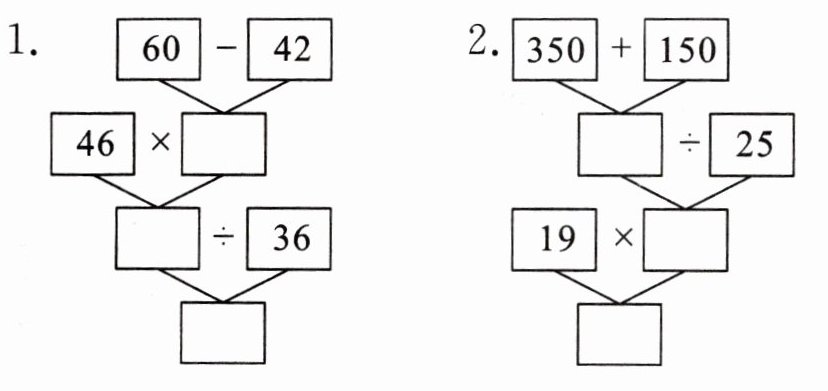 四 按照顺序计算,并填写下面的$\square$,然后列出综合算式。