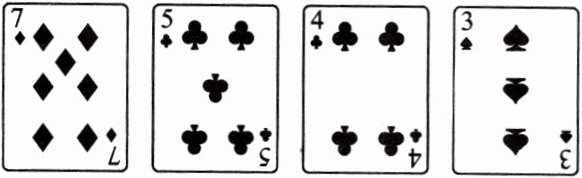 五 看下面 4 张扑克牌上的点数,列三道算式,让其中两道运算结果都是 24,一道运算结果为 0。