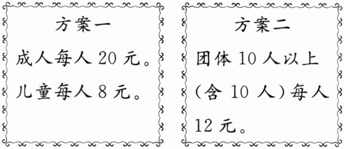 1. 成人 2 人,儿童 8 人,选哪种方案合算?