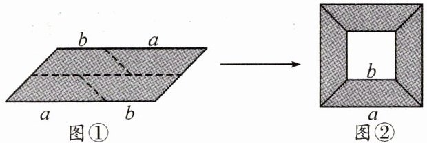 15.(14分)核心素养 抽象能力(1)如图①,将一个平行四边形沿虚线剪切成四个完全一样的等腰梯形,用这四个等腰梯形可以拼成图②(图②的形状为从边长为a的大正方形中挖去一个边长为b的小正方形),比较两图的阴影部分的面积,你可以得到的乘法公式为__________________(用式子表达);