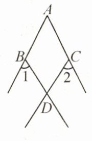 解:∠B=∠D,理由如下:因为AB//CD,所以∠A+∠D=180°.又因为AD//BC,所以∠A+∠B=180°,所以∠B=∠D