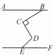 解:如图,过点C作CM//AB,过点D作DN//AB.因为AB//EF,所以AB//CM//DN//EF,所以∠BCM=∠ABC=30°,∠MCD=∠NDC,∠NDE=∠DEF=45°.又因为BC⊥CD,所以∠BCD=90°,所以∠NDC=∠MCD=∠BCD−∠BCM=90°−30°=60°,所以∠CDE=∠NDC+∠NDE=60°+45°=105°