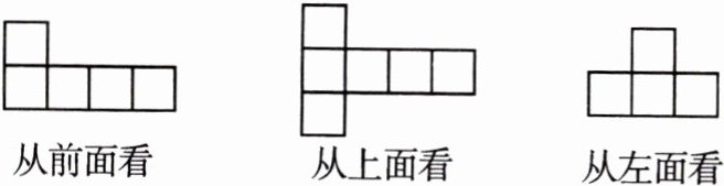 六 小梅用几个体积为1$cm^{3}$的正方体木块摆成一个几何体,下面是从三个方向看到的图形。