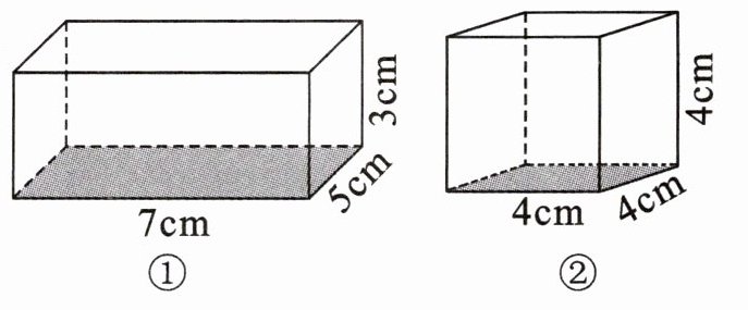 (1)图①中长方体的底面积是( )cm2,体积是( )cm3。
