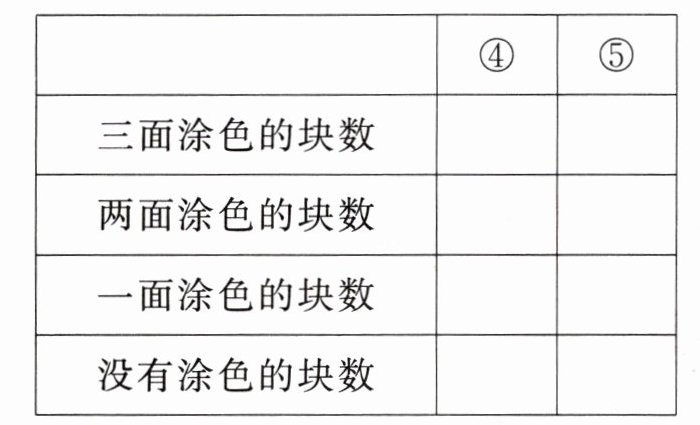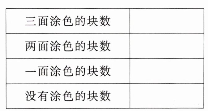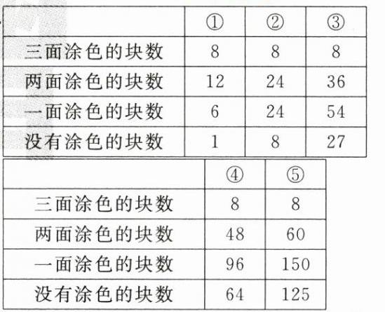 由以上可知,涂色情况与正方体的( )有关。当棱长为 $n\mathrm{cm}(n\geqslant2)$时: