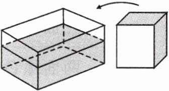 五 如图,一个长方体的玻璃缸长 8dm,宽 6dm,高 4dm,缸中水深 2.8dm。如果放入一块棱长为 4dm 的正方体铁块,缸里的水溢出多少升?